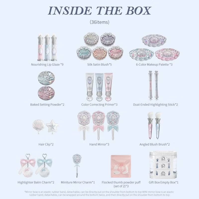 Unbox the magic of the ocean with this dreamy Shell’s Jewel Collection by Flower Knows — a full-face makeup set inspired by the shimmer of seashells and the elegance of mermaid treasures.