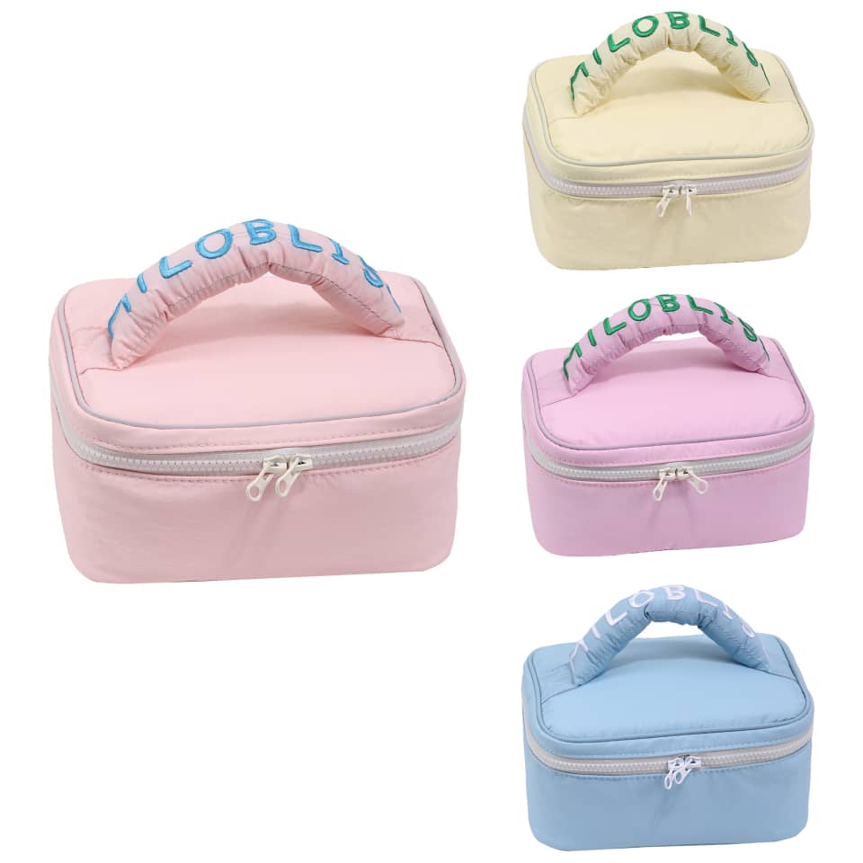 Available in multiple pastel colors (custom shades possible), this bag adds a soft pop of color to any routine. -