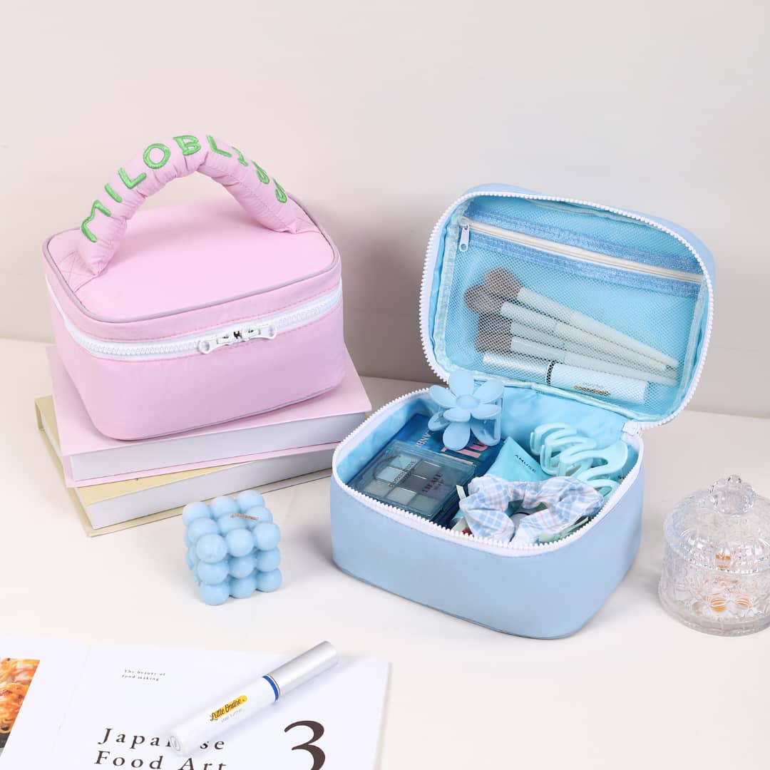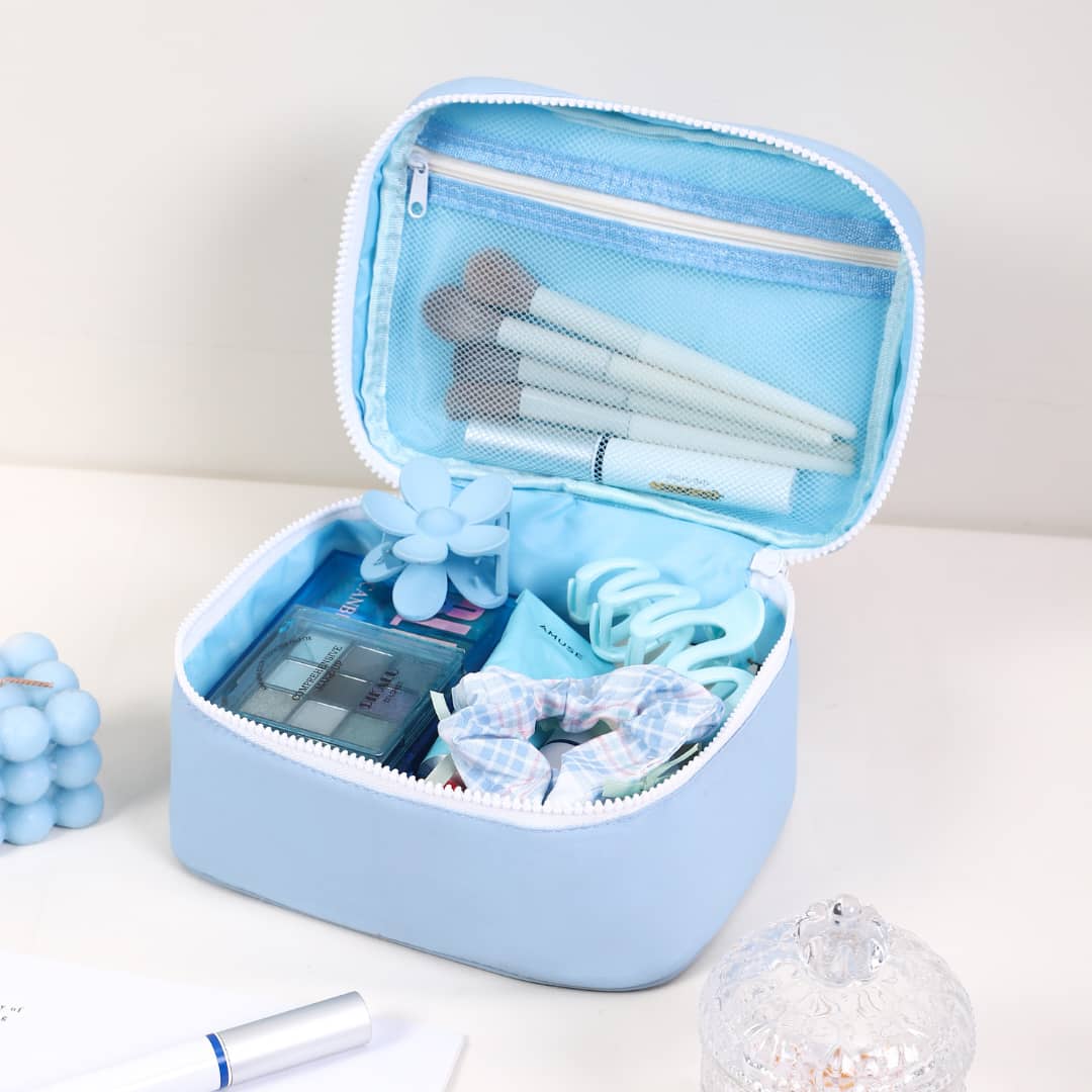 A pastel-colored essential for every girl’s daily beauty routine. This lightweight yet roomy makeup bag is both aesthetic and practical. Perfect as a cosmetic pouch, travel organizer, or a gift-with-purchase option.