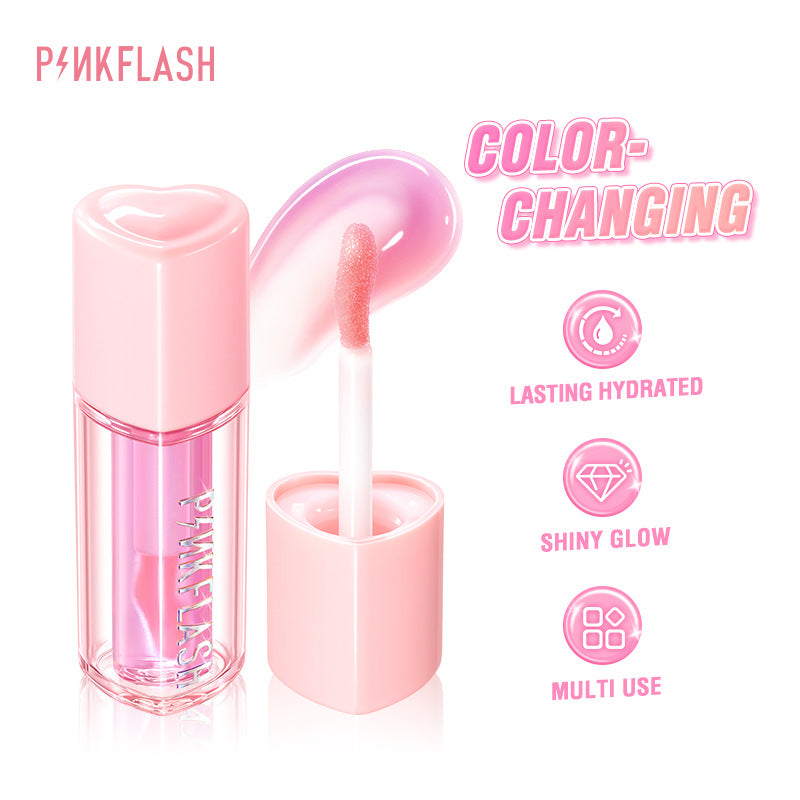 PINKFLASH Color-Changing Lip Tint adapts to your skin’s pH and moisture levels to create a custom pink or berry hue that enhances your natural lip color. The lightweight, buildable formula provides a fresh, glossy finish that lasts for hours without drying.