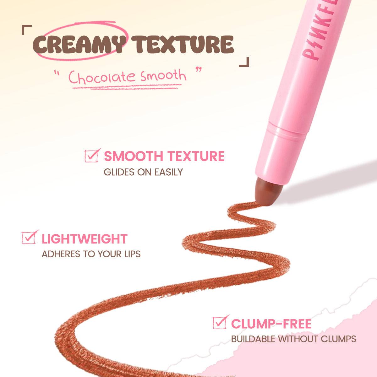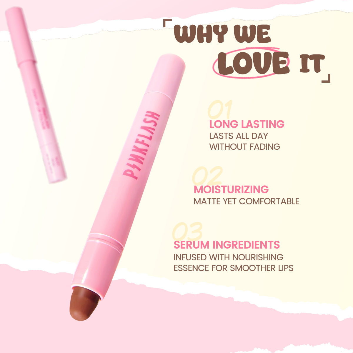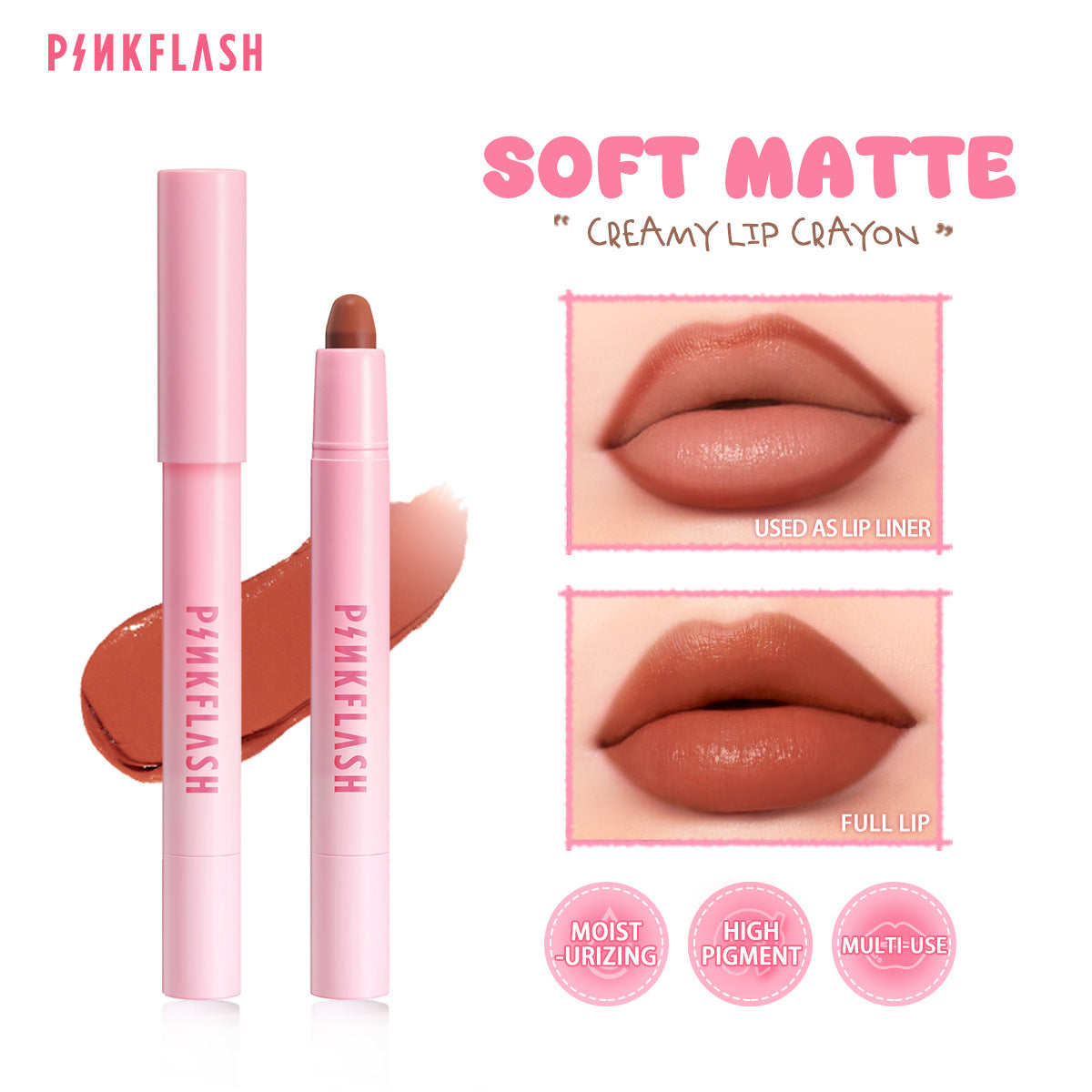 PINKFLASH Crayon Lipstick combines a ** playful crayon design** with a creamy, highly pigmented formula for effortless application and bold color payoff. Glide it on for precise definition or fill in lips for full coverage—all in one swipe!