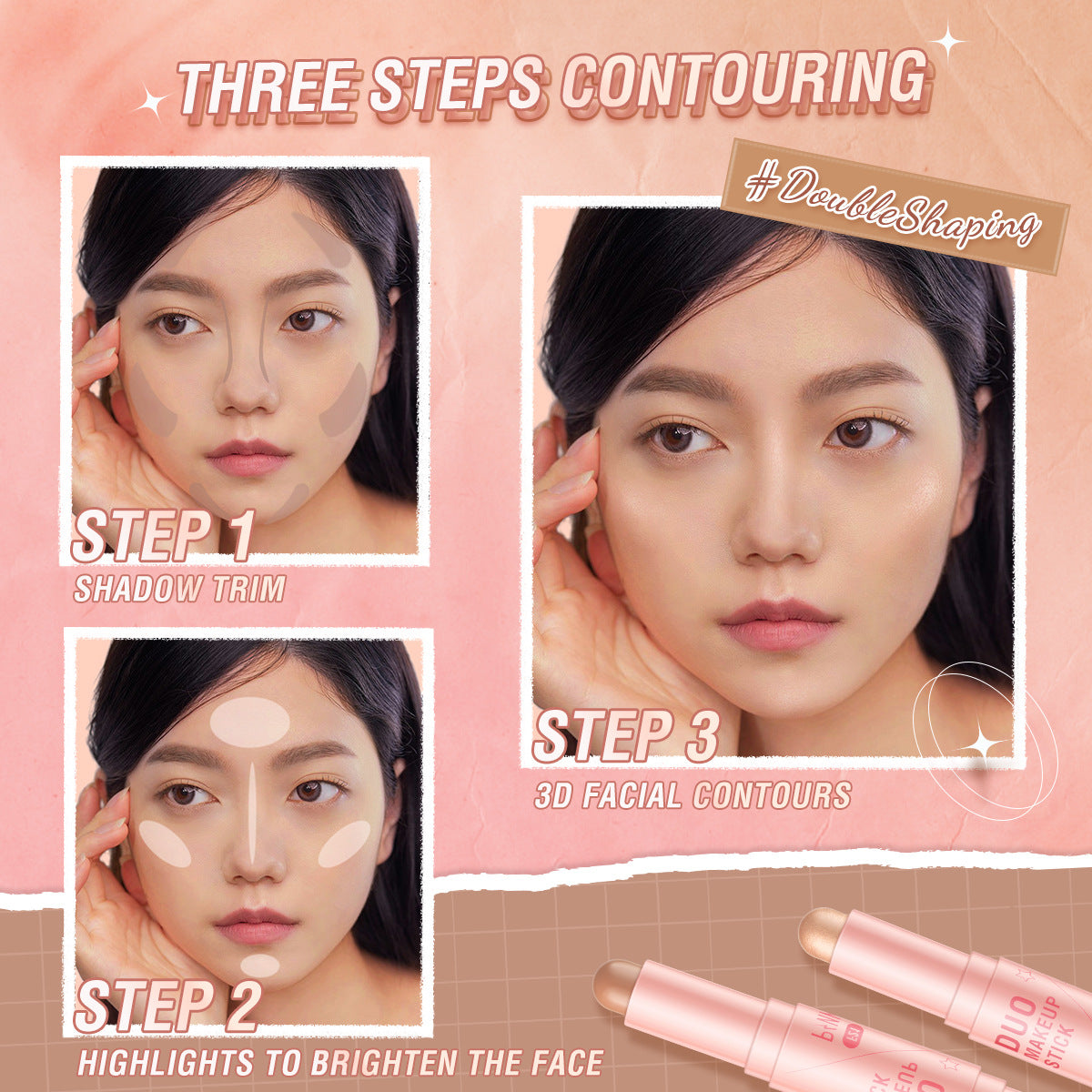 PINKFLASH Dual-Ended Blush & Highlighter Stick combines a creamy blush and a shimmering highlighter in one portable stick. Blendable and buildable, it lets you add a natural flush and dewy glow to cheeks, eyes, and lips in seconds.