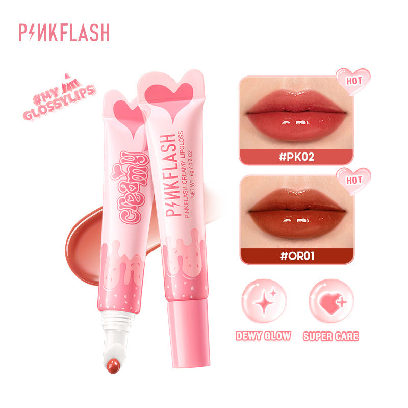 PINKFLASH Hydrating Glass Lip Gloss delivers a high-shine, glass-like finish while deeply nourishing lips with hyaluronic acid and botanical oils. The non-sticky formula plumps and smooths for a juicy, luscious pout that lasts.