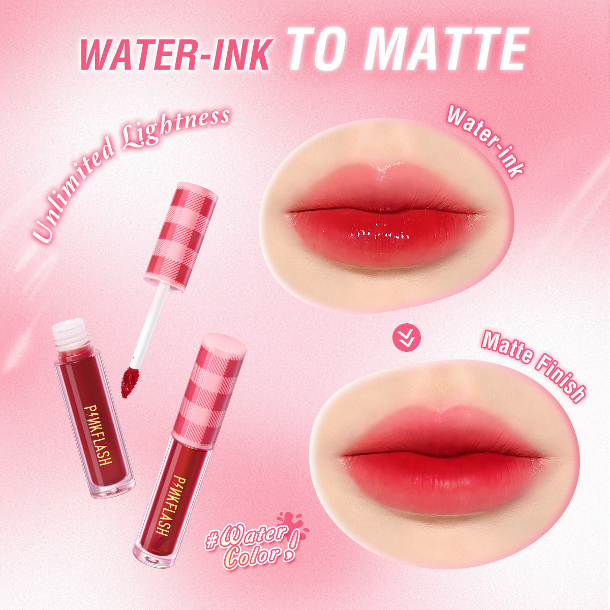 PINKFLASH Lip Tint & Gloss Liquid combines long-lasting pigment-rich stain with a high-shine glossy top coat. The lightweight formula delivers vibrant color that stains evenly, while the non-sticky gloss adds dimension and hydration.