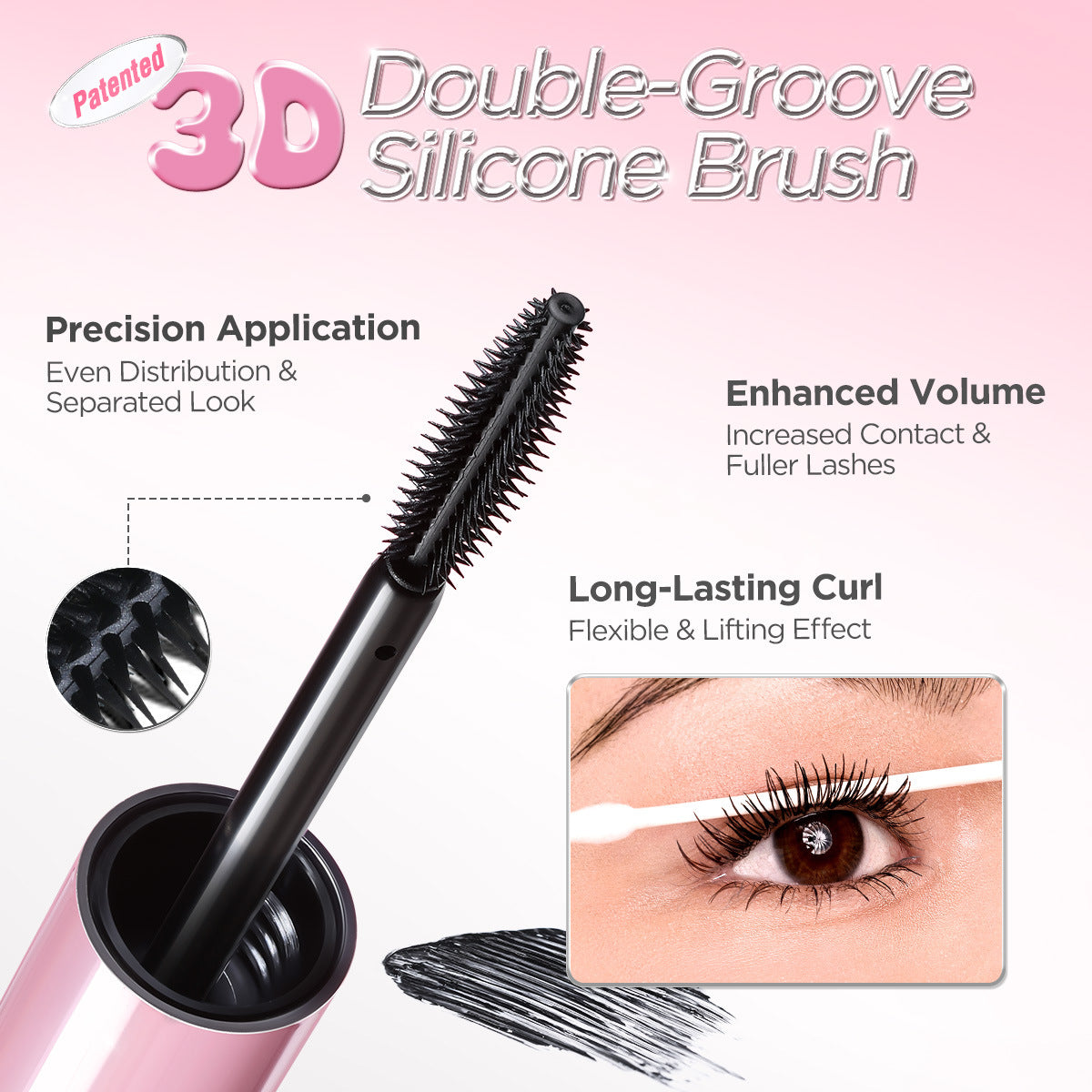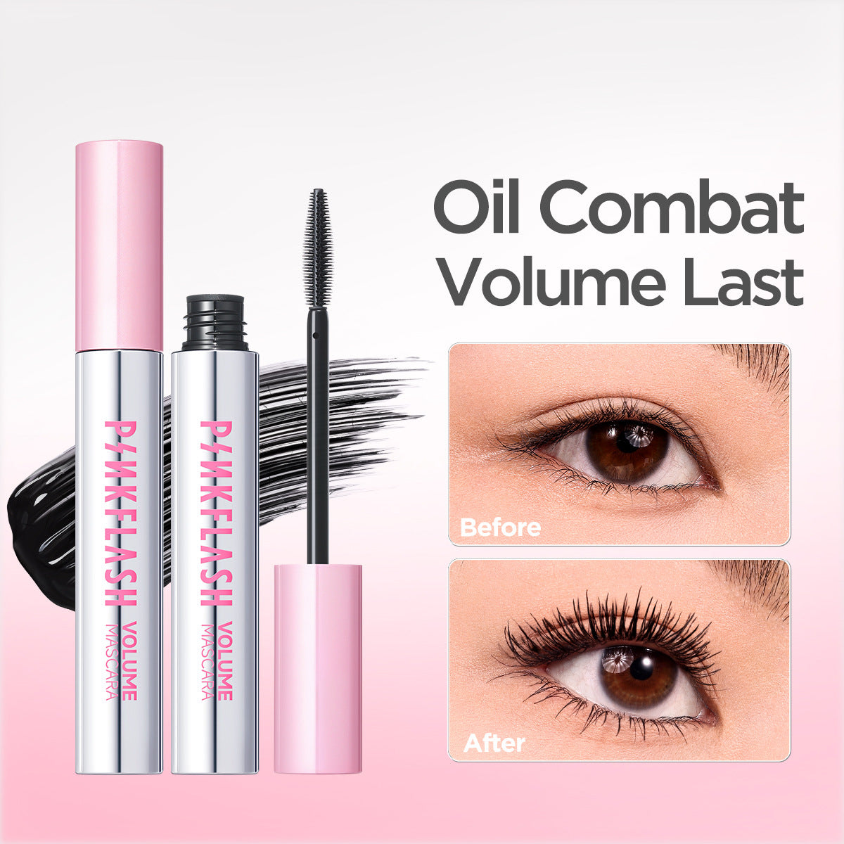 PINKFLASH Volumizing & Curling Mascara features a built-in curling brush and weightless formula to lift, separate, and plump lashes without clumps or stiffness. Get bold, fanned-out volume that lasts all day without smudging or flaking.