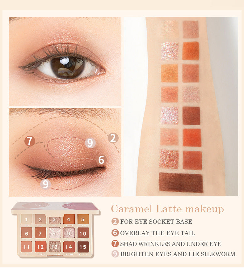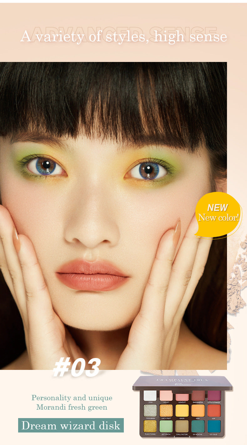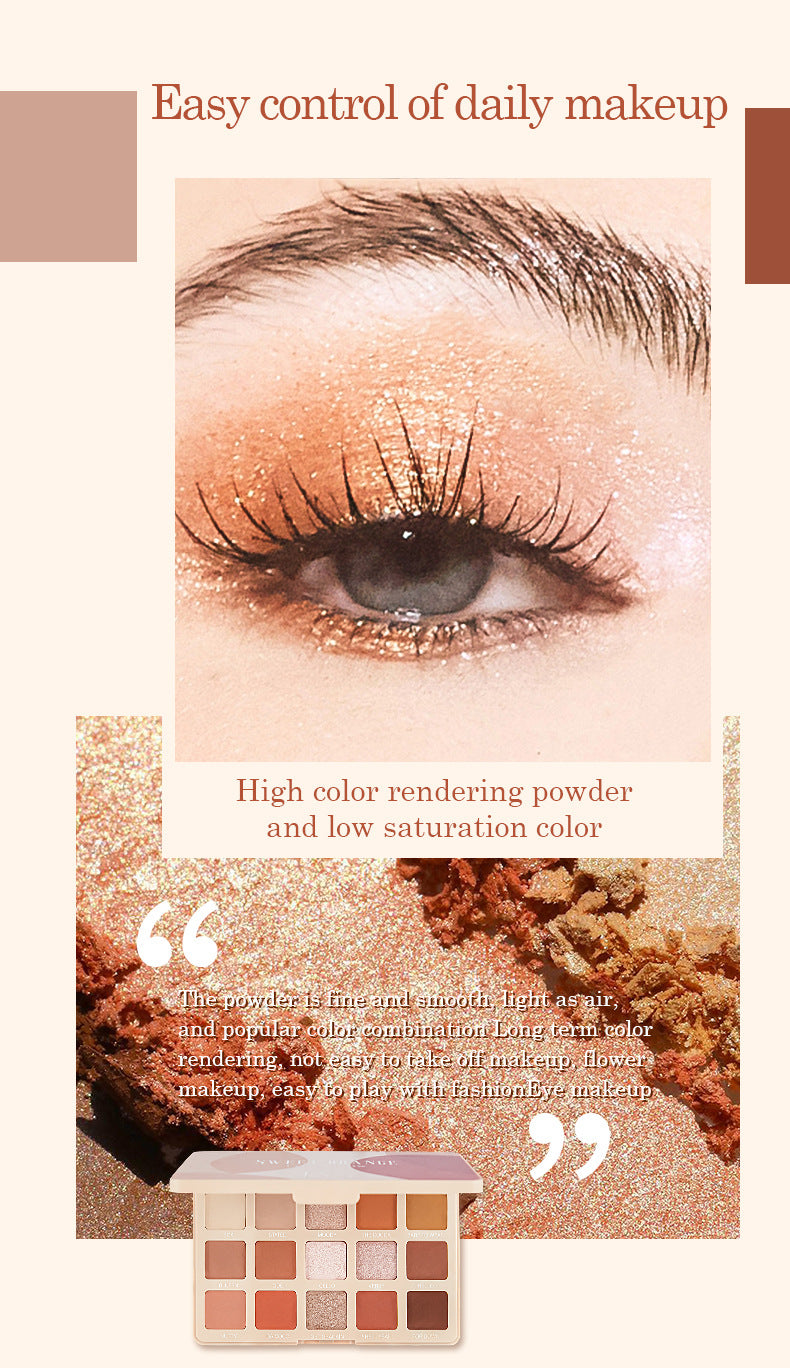 ✨ Create endless looks with this versatile 15-shade palette, featuring a perfect mix of matte, pearlescent shimmer, and fine glitter finishes.