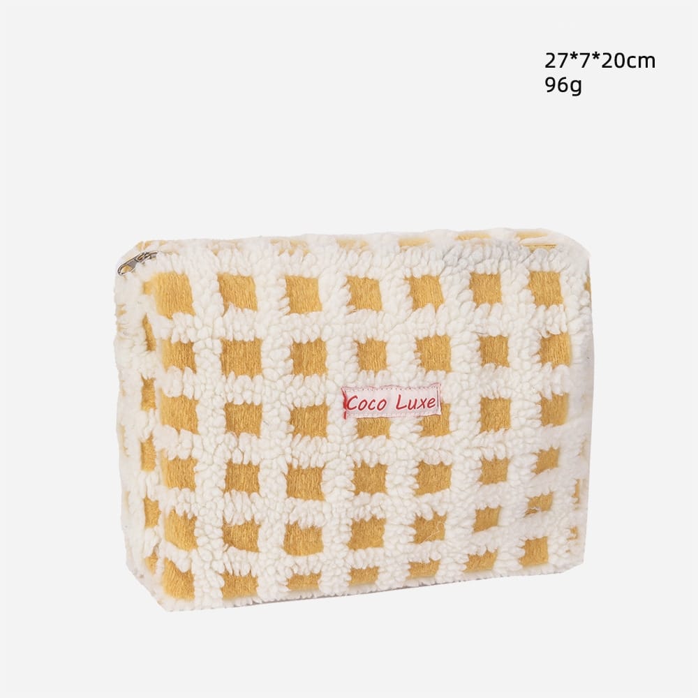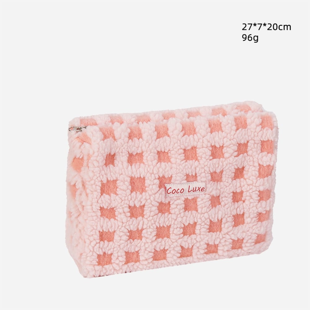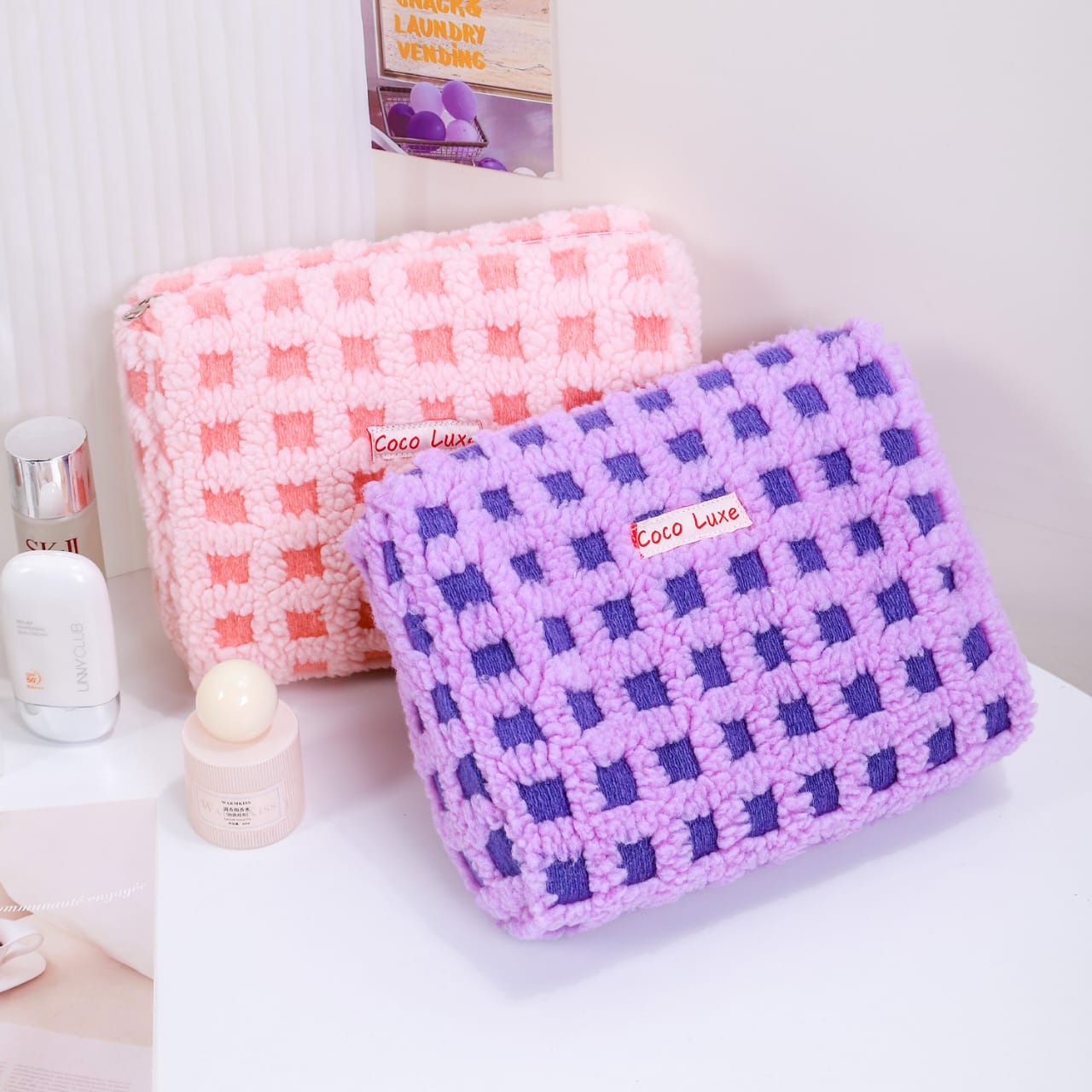 Waffle Check Lamb Fleece Makeup Cosmetics Bag