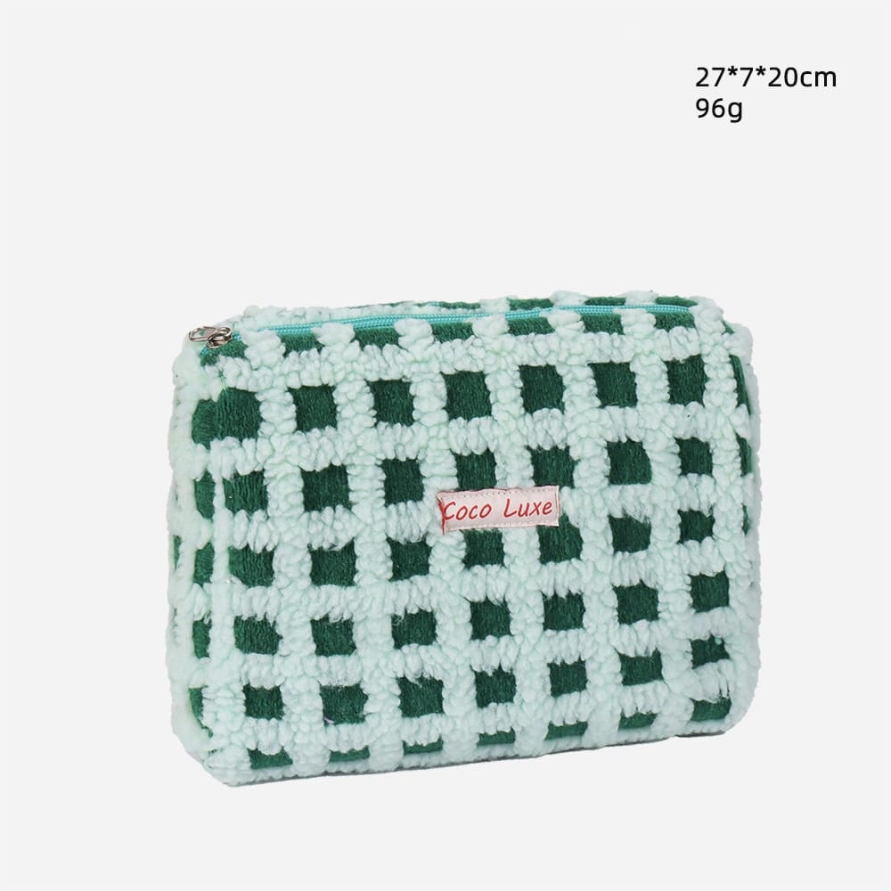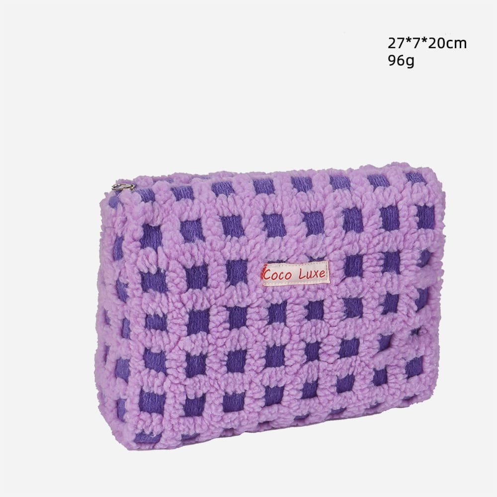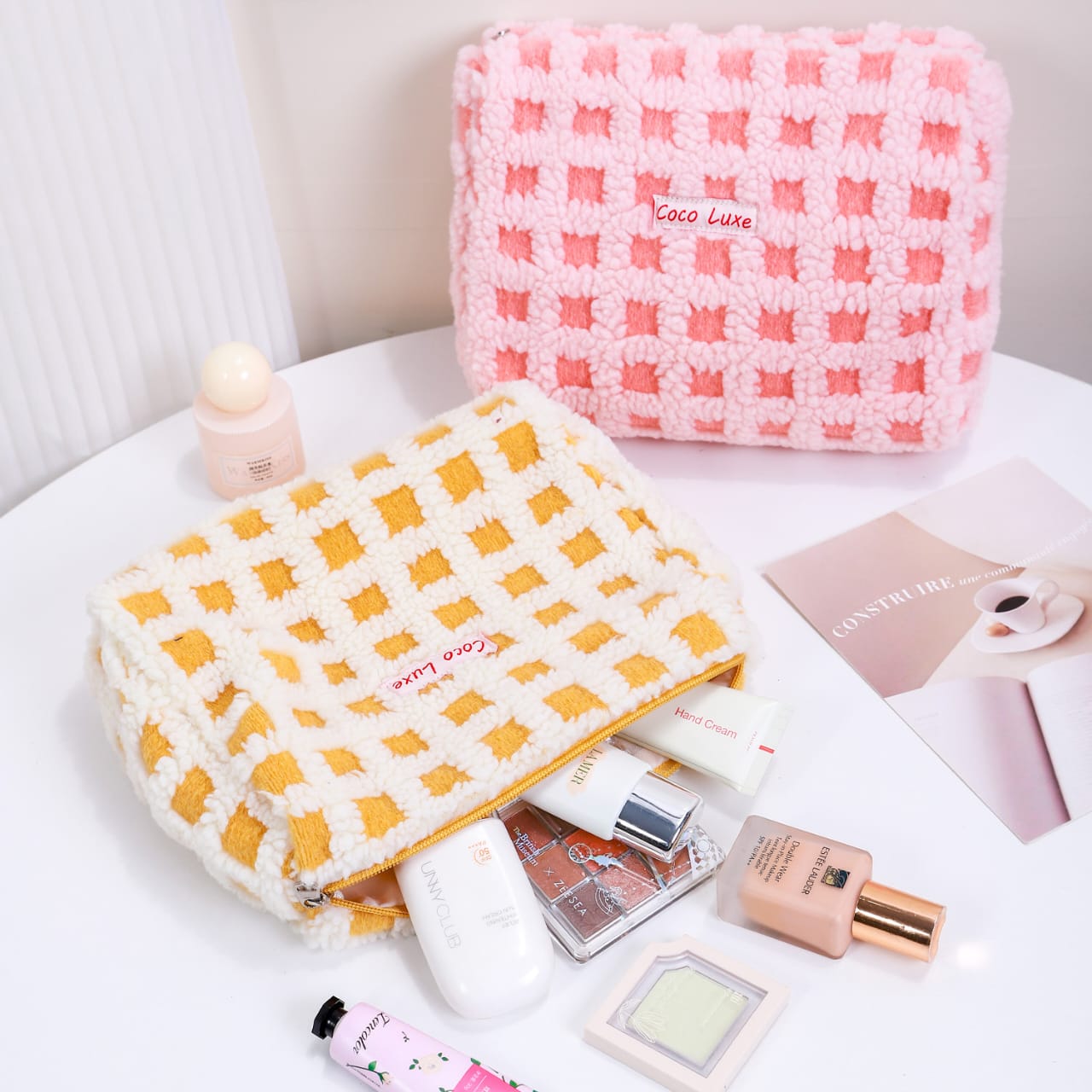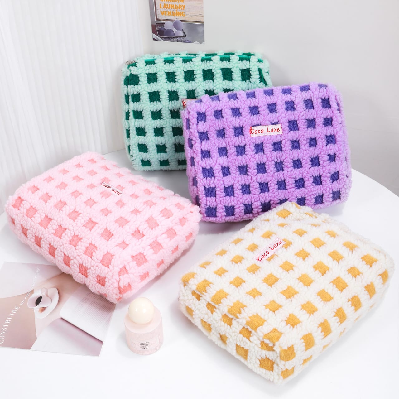 Waffle Check Lamb Fleece Makeup Cosmetics Bag