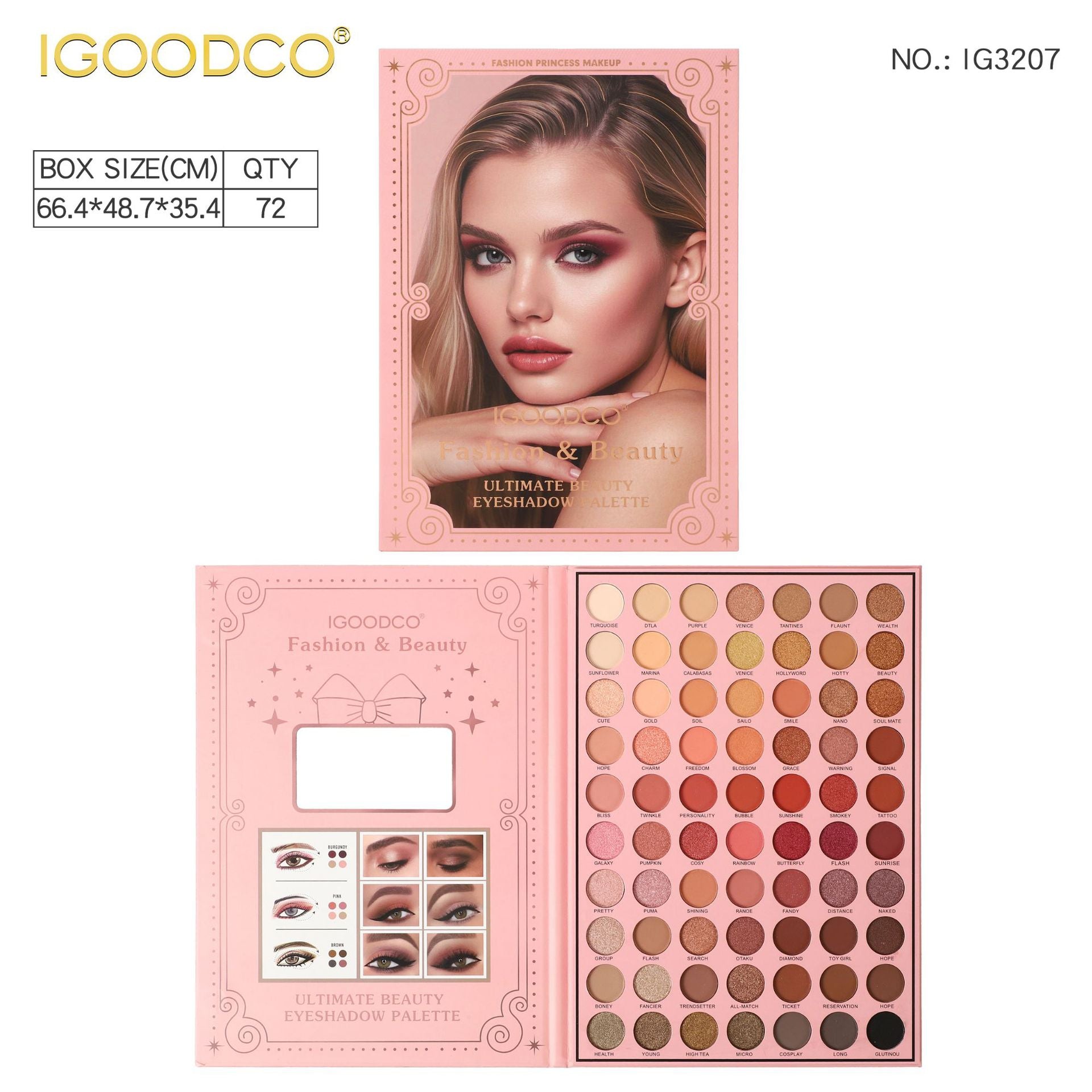 The IGOODCO 70-Color Eyeshadow Palette is a comprehensive professional makeup collection that combines an extensive range of matte and complementary shimmer shades. Designed for makeup artists, enthusiasts, and creative users, it offers unparalleled versatility for both everyday looks and bold artistic expressions.